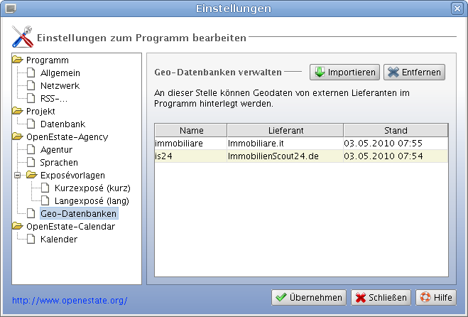 Ein Datenexport zum italienischen Immobilienportal immobiliare.it ist nun möglich. Um die regionalen Vorgaben des Portals zu berücksichtigen, wurde eine Geo-XML-Datei erstellt. Die genaue Vorgehensweise für einen Datenaustausch ist im Wiki erläutert.