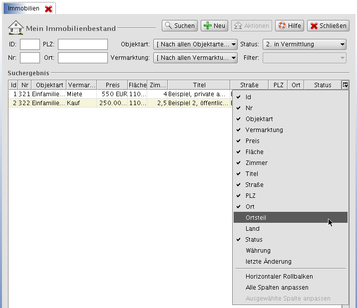 - 0000112: [Funktion] neue Spalten Immobilientabelle: Preis, Fläche, Zimmerzahl & Ortsteil.