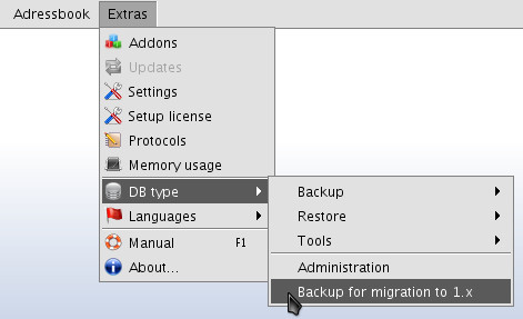 Open your project in ImmoTool 0.9.x and create a backup for migration via Main menu » Extras » DB type » Backup for migration to 1.x.