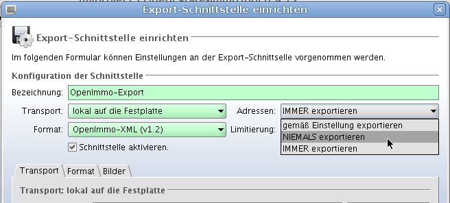 (c) Für jede Exportschnittstelle (Website / Portale) kann separat eingestellt werden, ob die Objekt-Adressen exportiert werden sollen.