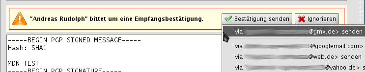 Aufgabe Auswahl des Absender-Mailkontos beim Versand einer Empfangsbestätigung