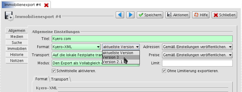 Seit Januar 2014 steht Kyero-XML in Version 3 zur Verfügung. Die momentan implementierte Version 2.1 ist damit veraltet.