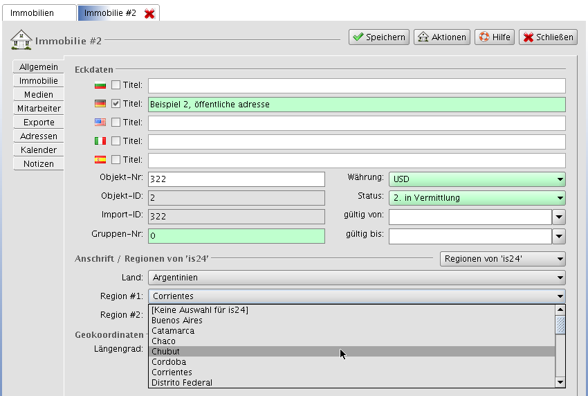 Einige Portale haben feste Vorgaben, welche Bezeichnungen für Ortsnamen / Regionen verwendet werden können. Diese Bezeichnung muss nicht zwingend mit der freien Eingabe aus dem ImmoTool übereinstimmen. Bei unterschiedlichen Portalen können durchaus unterschiedliche Vorgaben für den gleichen Ort vorliegen.