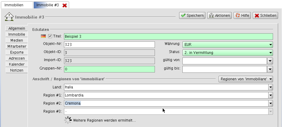 (2) Auswahl von Geo-Regionen einer Immobilie (z.B. für Auslandsobjekte in IS24 oder Immobiliare.it)