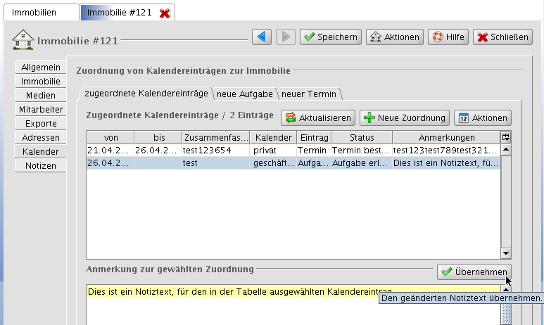 (1b) Verknüpfung von Immobilien mit Terminen/Aufgaben