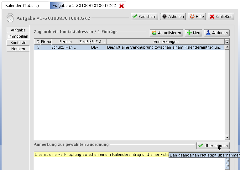 (2b) Verknüpfung von Adressen mit Terminen/Aufgaben