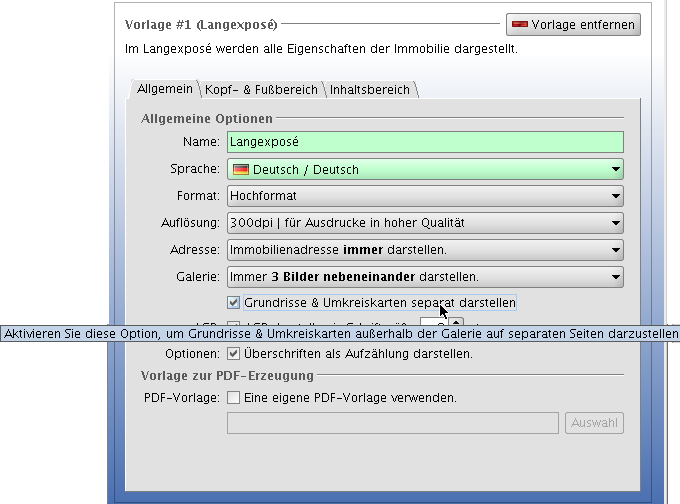 In den Einstellungen des Langexposés sollen weitere Optionen eingefügt werden, um die Darstellung der Galerie / Umkreiskarten / Lagepläne beeinflussen zu können.