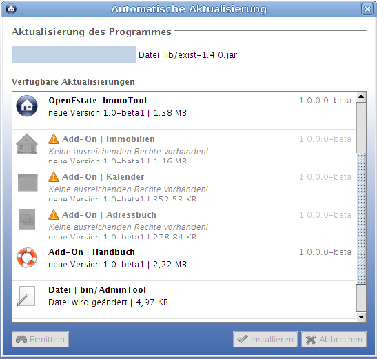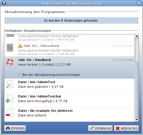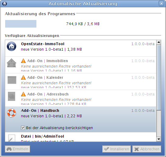 (b) Es soll bei der Aktualisierung zusätzlich VORAB auf die korrekten Schreibrechte hin geprüft werden. Wenn der Anwender keine ausreichenden Rechte zum Aktualisieren besitzt, soll er nicht erst eine Aktualisierung starten können.