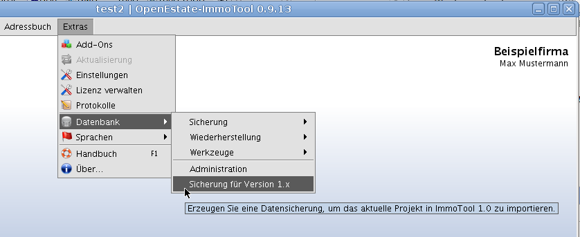 Aufgabe Export der Projektdaten für den Umstieg auf ImmoTool 1.0