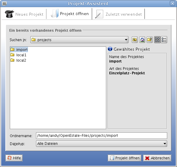 (c) Direktes Öffnen eines Projektes von der Festplatte