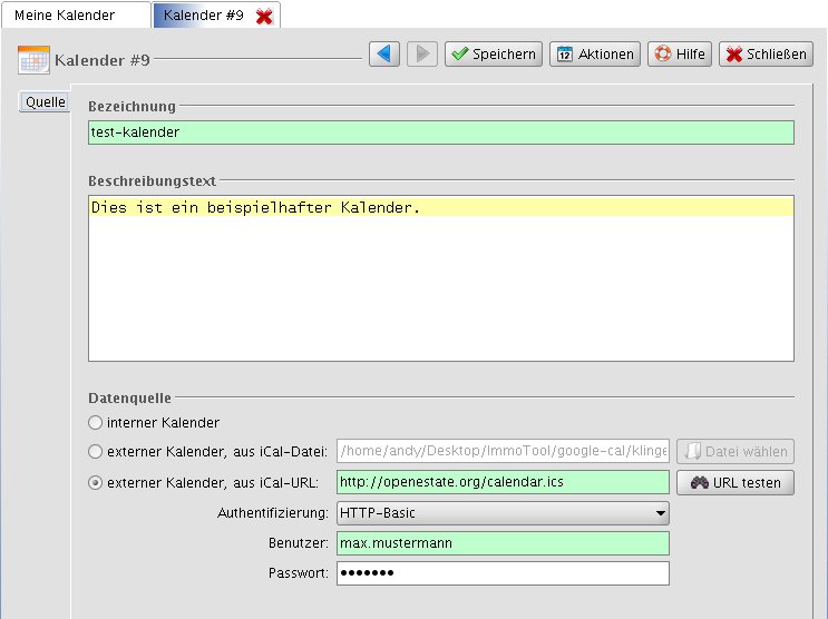 In einigen Anwendungsfällen sind die iCal-URL's durch ein Passwort geschützt. In der Regel erfolgt dafür eine HTTP-Basic Authentifizierung. Damit das ImmoTool auf solch geschützte Kalender zugreifen kann, soll in den Kalender-Einstellungen zusätzlich Benutzername & Passwort hinterlegt werden können, wenn eine iCal-URL als Kalenderquelle angegeben wird.
