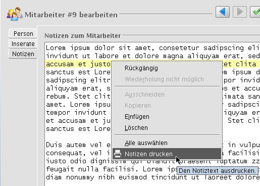 In den Notizfeldern von Immobilien, Adressen & Kalendereinträge soll ein Button zum Ausdrucken des eingetragenen Textes eingefügt werden.