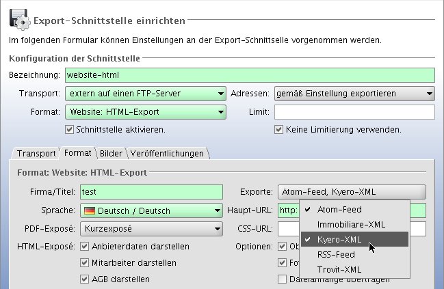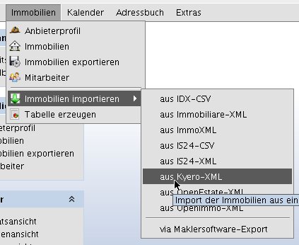 Das Kyero-XML-Format soll in das Programm integriert werden, um Immobilien aus dem Portal importieren oder zum Portal exportieren zu können.