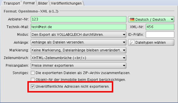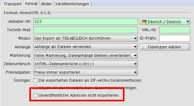 Es gibt vereinzelt Portale, welche dieses XML-Tag anscheinend nicht korrekt berücksichtigen. Aus diesem Grund soll man in den Export-Schnittstellen den Export der Immobilien-Adressen explizit deaktivieren können.
